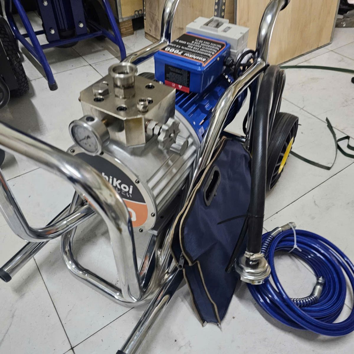 Máy phun bột có thể lắp đồng thời 2 vòi phun với lưu lượng tối đa đạt 3500PSI. Khi cần thiết, máy có thể sử dụng động cơ 4500W để đạt được hiệu quả làm việc tốt nhất.